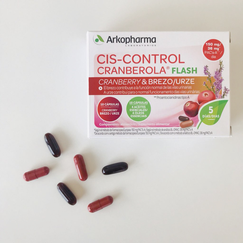 Cis-Control Cranberola Flash es un complemento alimenticio a base de Arándano Rojo, Brezo y 4 aceites esenciales (Niaouli, Canela de Ceylán, Romero y Ajedrea). Cis-control Cranberola FLASH contiene 4 aceites esenciales 100% puros y naturales Definidos Botánica y Bioquimicamente (llamados HEBBD). El Brezo favorece el bienestar de las vías urinarias y la eliminación de líquidos.