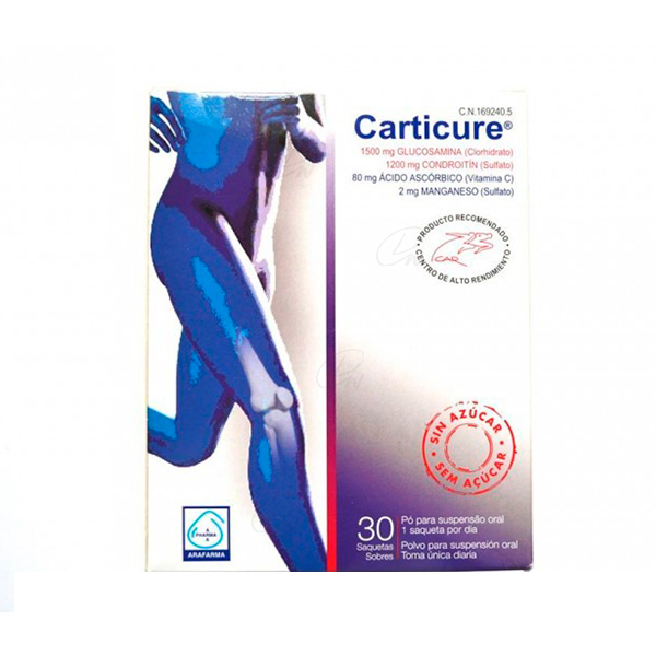 El polvo para suspensión oral de Carticure ayuda a fortalecer las articulaciones. Está formulado a base de glucosamina y condroitina, que son componentes esenciales en la estructura de los cartílagos y otros tejidos de las articulaciones.