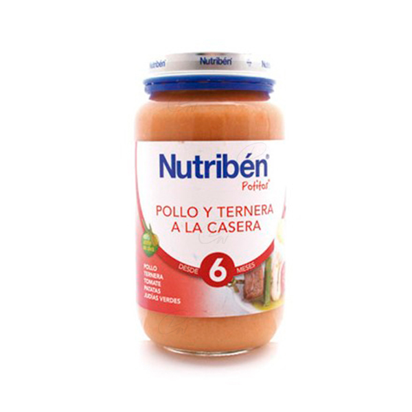 Potito de pollo y ternera a la casera destinado para niños a partir del 6º mes.