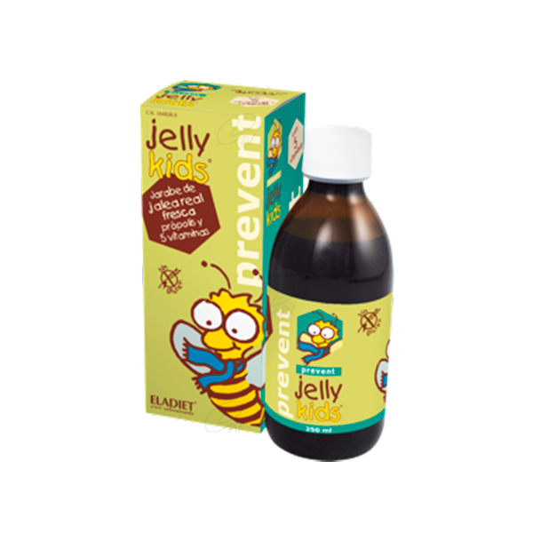Complemento alimenticio de jalea real fresca, própolis, polen, acerola y vitaminas. Contiene la cantidad diaria recomendada de vitaminas A, B1, B2, B3, C y D. Las vitaminas A y C contribuyen al normal funcionamiento del sistema inmunitario. Las vitaminas C, B1, B2 y B3 contribuyen al normal metabolismo energético. Aporte diario (por 10 ml): 150 mg jalea real fresca, 100 mg polen, 100 mg própolis, 80 mg vitamina C (100% VRN), 50 mg acerola, 16 mg vitamina B3 (100% VRN), 1,4 mg vitamina B2 (100% VRN), 1,1 mg vitamina B1 (100% VRN), 800 µg vitamina A (100% VRN). VRN= Valor de referencia de nutrientes.VRN= Valor de referencia de nutrientes. Modo de empleo: De 3 a 5 años 5 ml (1 cucharada de postre) al día, preferentemente por la mañana, en ayunas. Mayores de 5 años 10 ml (1 cucharada sopera o 2 de postre) al día, preferentemente por la mañana, en ayunas. Contenido: 250 ml. Sin lactosa y sin gluten. Sabor fresa