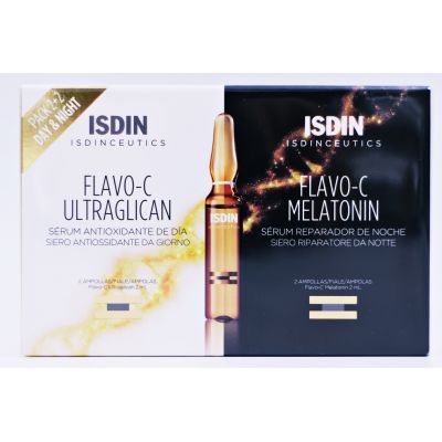Isdinceutics Day & Night Flavo-C Serúm Antioxidante Día, 2ampx2ml+ Melatonin Serúm, 2ampx2ml La rutina Day&Night, para tener una piel protegida durante el día y reparada por la noche. El pack incluye: Isdinceutics Flavo Sérum Antioxidante Isdinceutics Flavo Melatonin