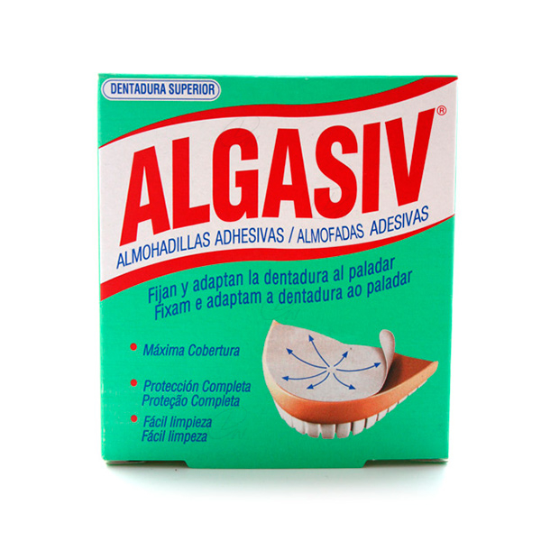 Finas almohadillas que fijan y adaptan la dentadura protegiendo de irritaciones y otras molestias, compuetas por dos capas exteriores de celulosa y una capa interior con dos potentes adhesivos naturales: Polyvox y Alginato Sódico (extracto de algas marinas).