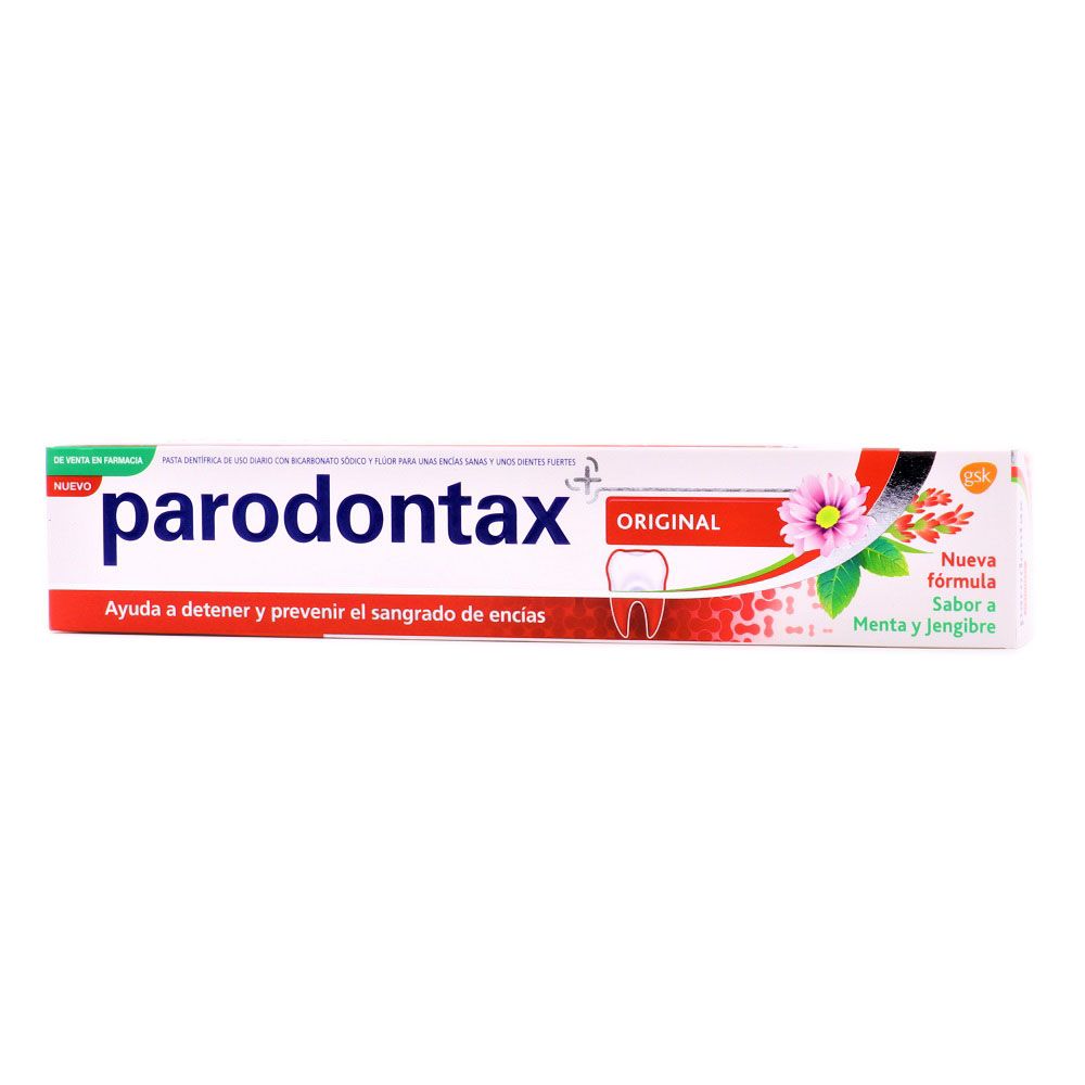 Parodontax Original Pasta Dental Sabor a Menta y Jengibre 75ml Nueva Fórmula. Parodontax Original es una pasta dentífrica de uso diario, que ayuda a prevenir el sangrado de encías. Con sabor a Menta y Jengibre. Unos dientes sanos empiezan con unas encías sanas. Ayuda a mantener libre de bacterias, la línea entre las encías y los dientes. Ayuda a mantener ajustados el diente y la encia. Si sangras cuando te lavas los dientes, Parodontax está formulado especialmente para evitarlo. El sangrado de las encías puede deberse la acumulación de placa bacteriana en la línea de la encía, al no eliminarse se inflama y puede provocar la recesión de la encía y al final la caída del diente. Qué contiene Parodontax Original