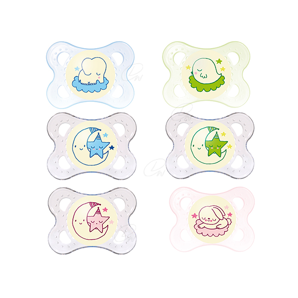 El botón del MAM Night brilla en la oscuridad, para que padres y bebés puedan encontrarlo fácilmente.