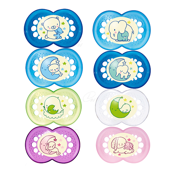 El botón del MAM Night brilla en la oscuridad, para que padres y bebés puedan encontrarlo fácilmente.
