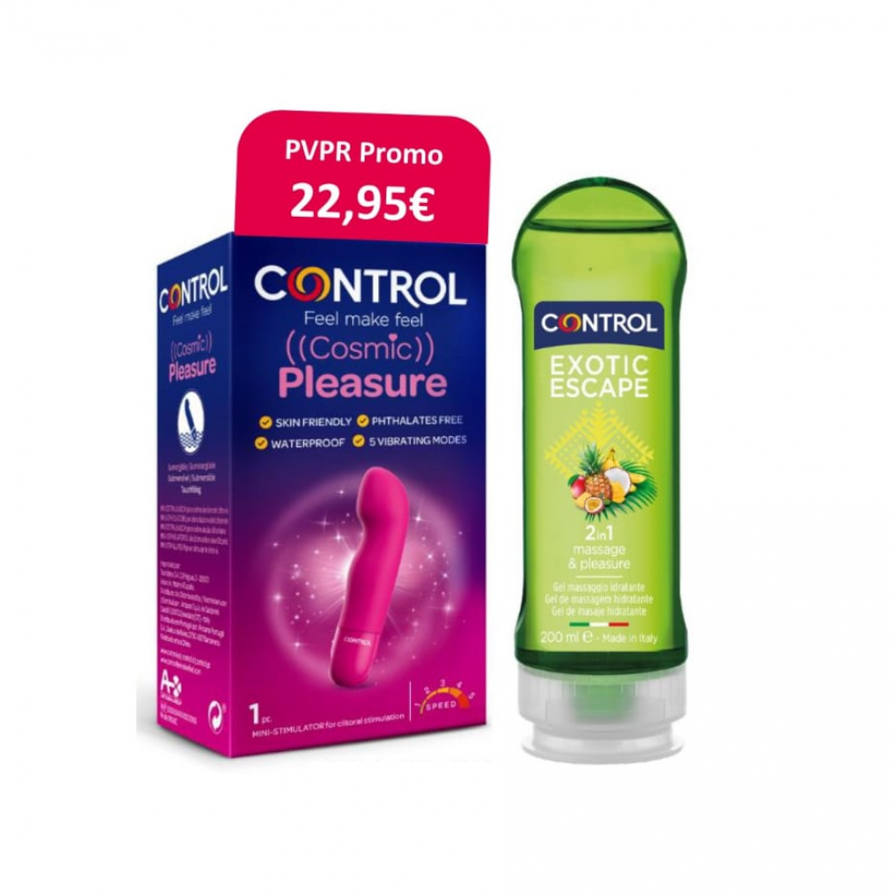 PACK CONTROL COSMIC PLEASURE + EXOTIC ESCAPE GEL DE MASAJE HIDRATANTE